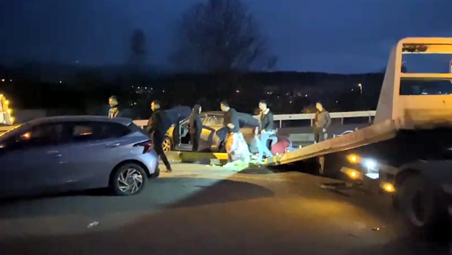 Kazada otomobildeki hamile olan Merve Y., Ahmet Y., Nuriye T. ve diğer otomobilin sürücüsü Gülnur D. S. yaralandı. Çevredekilerin ihbarı üzerine kaza yerine polis ve sağlık ekipleri sevk edildi.
